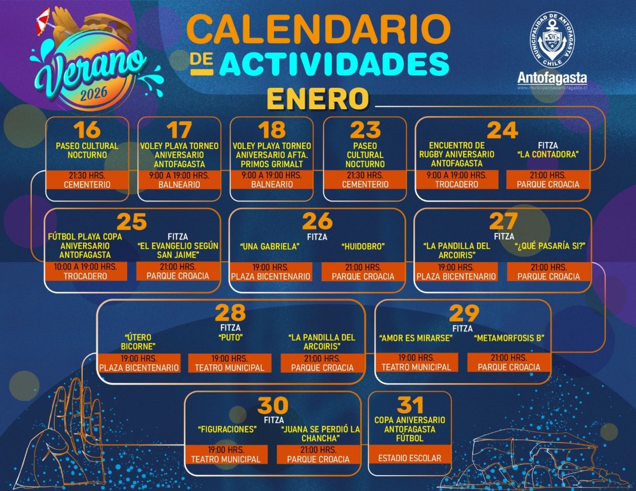 MUNICIPALIDAD DE ANTOFAGASTA PRESENTA NUTRIDO CALENDARIO DE ACTIVIDADES DEL VERANO 2026