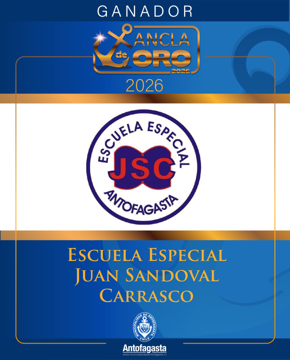 Mientras que en la categoría personas jurídicas fue reconocida la Escuela Especial Juan Sandoval Carrasco E-77, que conmemora 65 años de existencia desde su creación en 1959, y 50 años de funcionamiento ininterrumpido en su actual ubicación de General Borgoño 876, dependiente de la Corporación Municipal de Desarrollo Social (CMDS) de Antofagasta. Considerada como referente en la atención educativa de estudiantes con discapacidad intelectual, trastorno de espectro autista, multidéficit motor y otras neuro divergencias. Actualmente, atiende una matrícula de 190 estudiantes, distribuidos en 8 cursos de educación general básica, desde 2° a 8° año y 11 cursos del nivel laboral.