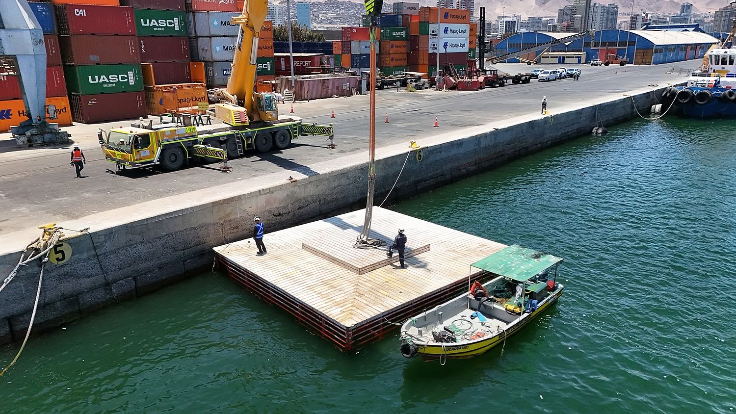 Con el izaje de la tradicional balsa, tras estar cinco años en instalaciones portuarias, comenzó la cuenta regresiva para su ansiado retorno al Balneario Municipal.